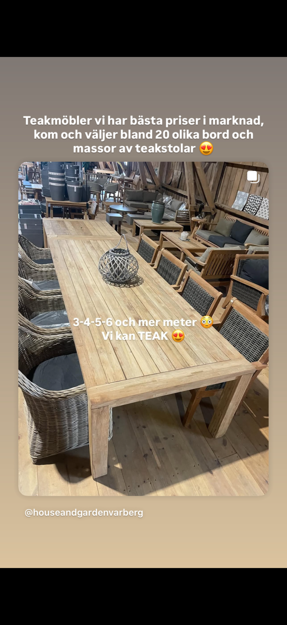 Massivt återvunnen teak, riktigt gedigen konstruktion. Vackert patina.